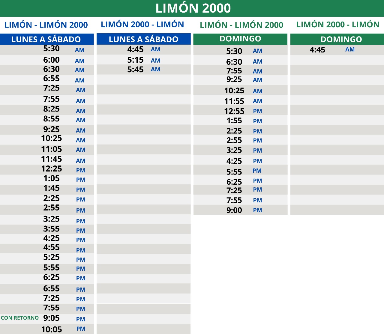 Horarios de salida